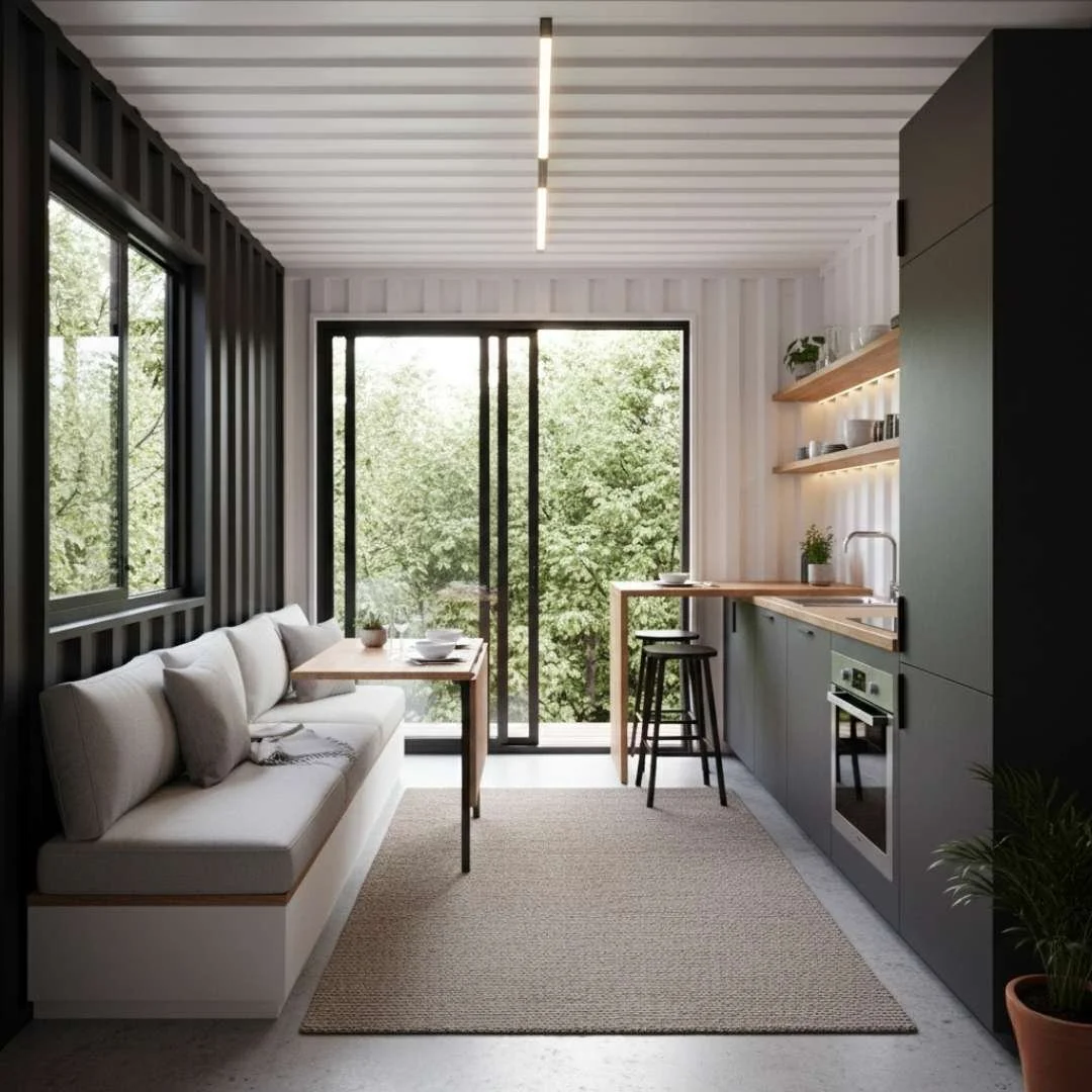 Every single square inch within a container home is precious and must be utilized effectively. Embrace innovative "tiny home" design strategies:
